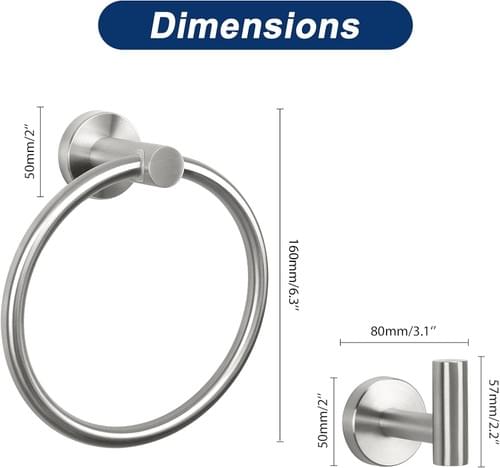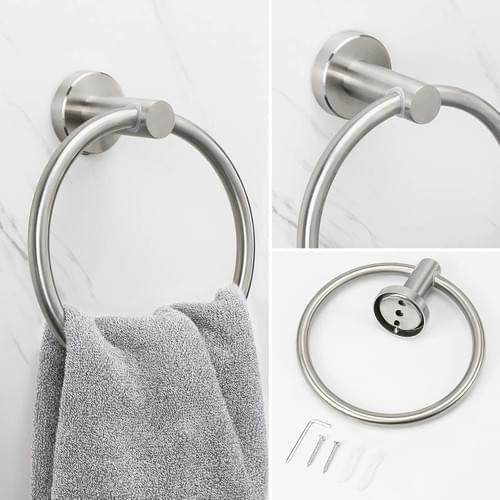 SAVING SPACE: Bathroom towel ring and 2 towel hooks accessories can make your home tidy and clean. It can perfectly suit your bathroom, bedroom and cosmetic room.