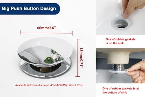 STANDARD SIZE: Available sink hole diameter: 40mm-50mm(1.6 inches-1.97 inches). NearMoon universal sink drain stopper is suitable for most standard sink.