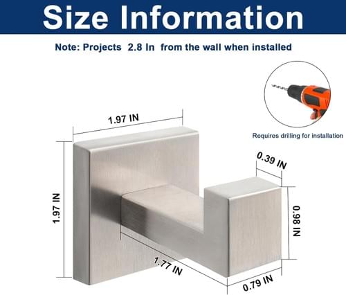 Bath Towel Hooks -SUS304 Stainless Steel Square Clothes Robe Hooks Hanger