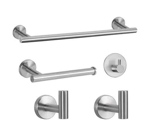 5-PIECES COMBINATION: 16 inches towel bar, toilet paper holder and 3 multi-purpose hooks; The combo can perfectly meet your all needs in daily life