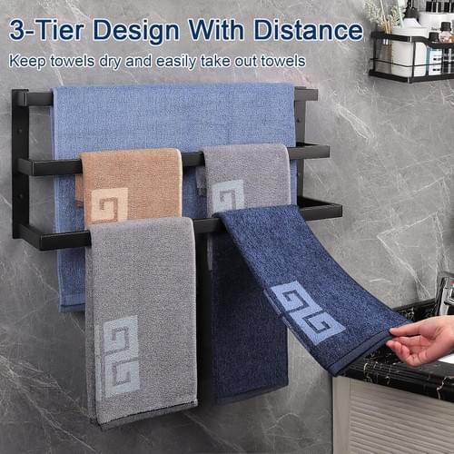 3-TIER TOWEL RACK: Length of hanging space is 24"". The distance of each towel bar to the wall is 2 inches, 3.5 inches, 5 inches. And the ladder design of towel rack provides great airflow, no more wet towels. Keep towels dry.