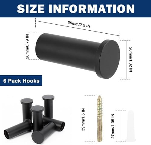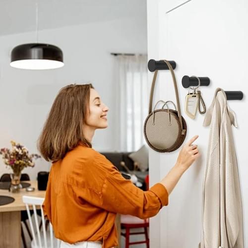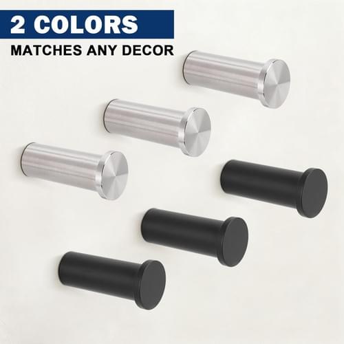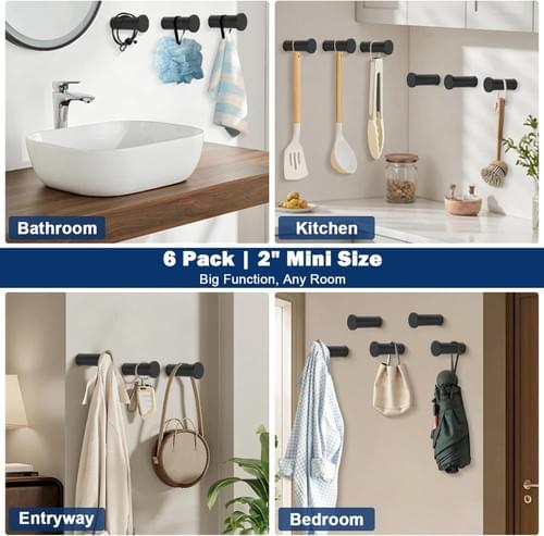 6 PACK WALL HOOKS: This set includes 6 matching hooks for whole-home use; Great for hanging towels, robes, coats, bags, hats, or umbrellas in bathrooms, entryways, and closets to solve everyday storage needs