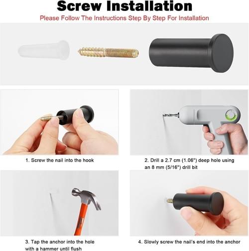 STABLE SCREW MOUNTED: Mark, drill, insert anchors, and tighten per instructions; Easily hang your daily items for tidy storage; Note: For solid walls only, such as concrete, tile, or marble