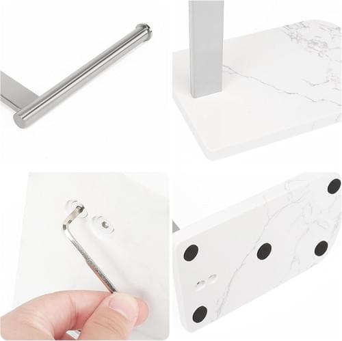 EASY INSTALLATION: Step1: Insert the first screw from the holes of marble base into the holes of towel bars and tighten it half. Step2: Use the same method to insert the second screw and tighten it half. Step3: Tighten all the screws with hexagon wrench."