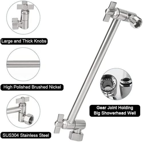 - NO PLASTIC PARTS: Our shower arm is made of quality 304 stainless steel with a high polished brushed nickel; The quality of being able to last a long time without becoming damaged