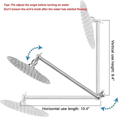 - PGRADE SHOWER EXPERIENCE: Adjustable shower arm fits any shower head or hand shower; Fixed shower head overhead, you can enjoy a wonderful downpour that is flowing down over your full body; NOTE: This adjustable shower arm is not available for 16'' shower head