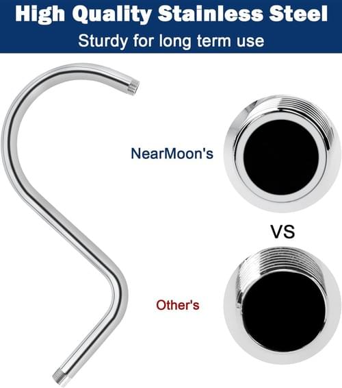 MATERIAL: NearMoon shower head extension arm is constructed of high quality stainless steel with sturdy and rust free. Easy to clean.
