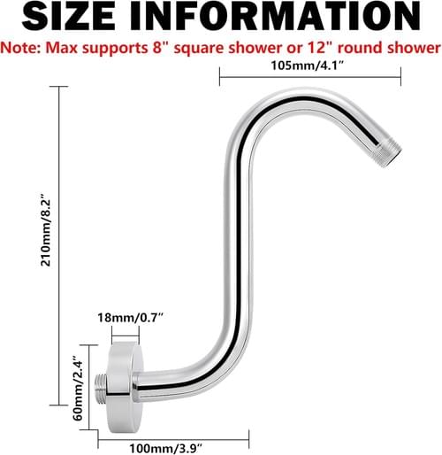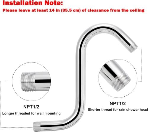 - S SHAPE: This shower extension arm has an elegant and unique style with ‘S’ design. Modern decorative look brings you a relaxing and pleasing shower experience