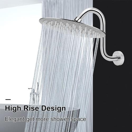 - HIGH RISE DESIGN: This “S” shaped shower arm raises your shower arm for about 10 inches. A great design for creating a spacious and comfortable environment for tall individuals