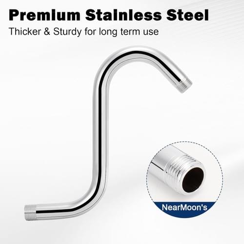 MATERIAL: NearMoon shower head extension arm is constructed of quality stainless steel with sturdy structure. Easy to clean