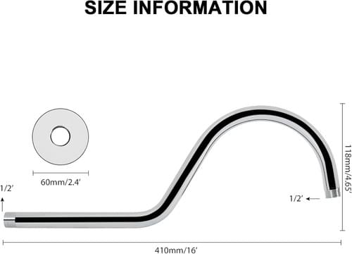 - 16" SHOWER ARM: The "S"-shaped design extends the showerhead by 16 inches in length and 4.6 inches in height, offering a spacious, comfortable experience for taller users while keeping the showerhead securely facing downward