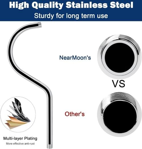 MATERIAL: NearMoon shower head extension arm is constructed of quality stainless steel with sturdy. It is rustproof. Easy to clean.