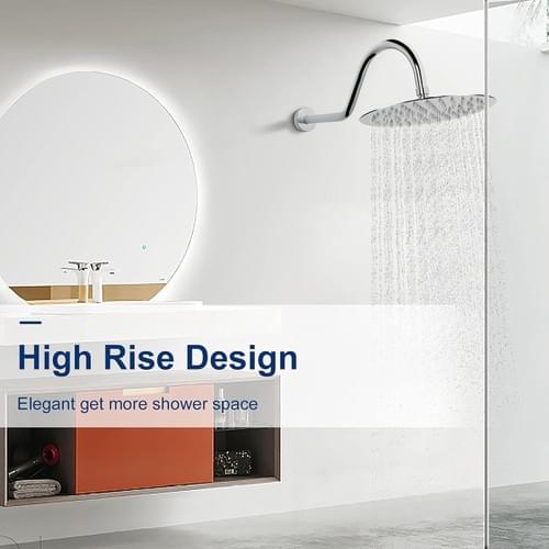 16" SHOWER ARM: The "S"-shaped design extends the showerhead by 16 inches in length and 4.6 inches in height, offering a spacious, comfortable experience for taller users while keeping the showerhead securely facing downward