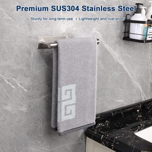 "STRONG SELF ADHESIVE: The self adhesive hand towel holder has strong adhesion and can be firmly attached to the wall, no drill required