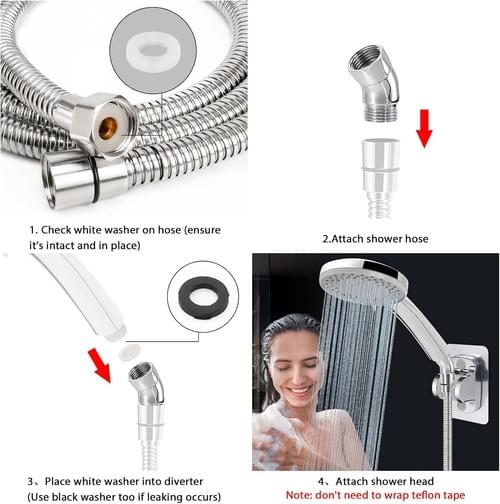 QUICK INSTALLATION: Installs within 1 minutes; Connect the female thread to the handheld hose and the male thread to the showerhead, then tighten the threads; Tip: Don't forget the filter screen