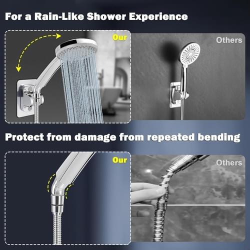 135° SHOWER ELBOW: The shower elbow extender enables flexible downward angle adjustment of handheld without affecting water flow or pressure; Its tangle-proof design features gentle vertical swing to protect the hose, enhancing shower comfort