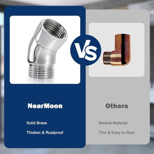 QUALITY: This shower elbow is made of solid brass, withstands high heat and pressure; multi-layer chrome finish protect from scratches and ensures lasting leak-proof performance
