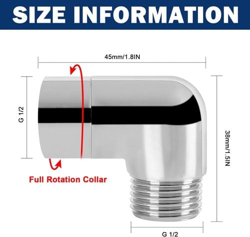 FUNCTION: The 90 degree shower elbow extender can adjust the angle of your shower head vertically down and without limiting the flow or pressure. Elegant get better shower experience.
