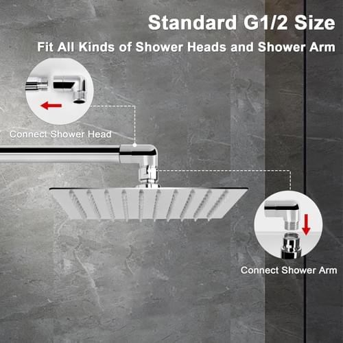 COMPATIBLE SIZE: G1/2"" female and male, fit most standard shower head, shower arm, shower base and hose. Straight thread connection, washer included.
