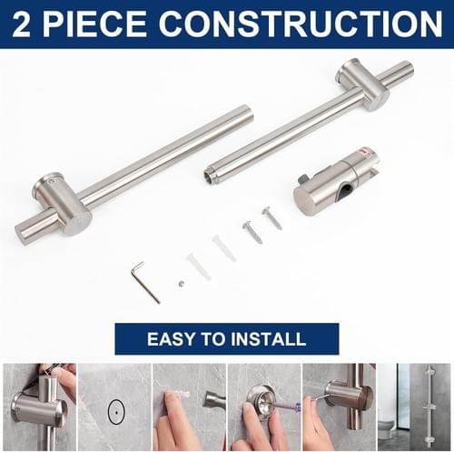 "STURDY: The slide bar is made of sus304 stainless steel, never rusty, great for humid environments; the adjustable handheld shower head holder is made of engineering grade abs plastic material, which is more solid and long lasting