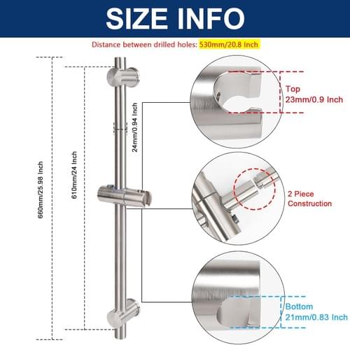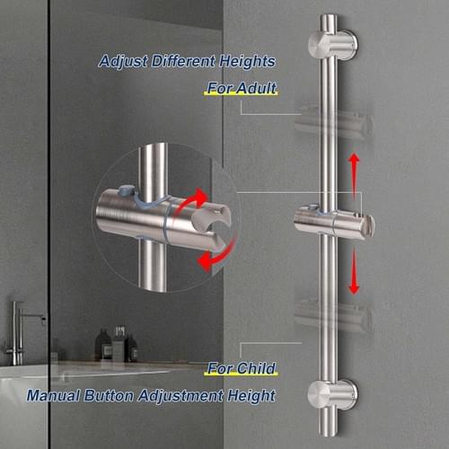 EXTRA-LONG RANGE ADJUSTMENT: 24 Inch long of the shower slider bar, which has a wide range to flexibly adjust the height to suitable children and adults; It can satisfy family use, convenience and practicality