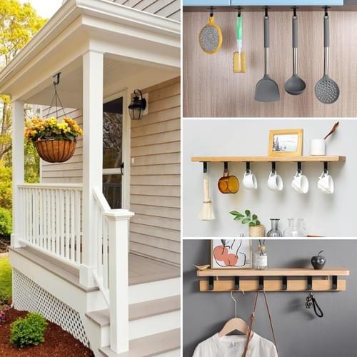 WIDELY APPLICATION: The multifunctional ceiling hook is a good helper for organizing, making your life more organized and convenient. These ceiling hooks are suitable for hanging bathroom towels, kitchen utensils, cabinet, planters, cups, bird feeders, holiday decorations, string lights, wind chimes and so on.
