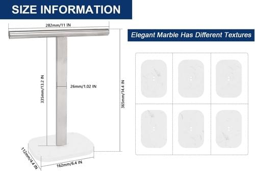 "RUSTPROOF: NearMoon standing hand towel bar is constructed by quality 304 stainless steel with marble base, solid and never rust; Suitable for humid environments