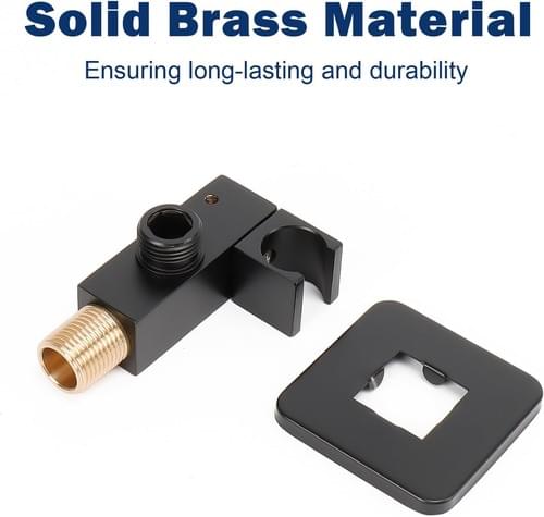 Wall Supply Elbow with Handheld Shower Holder - Solid Brass Square Shower Bracket
